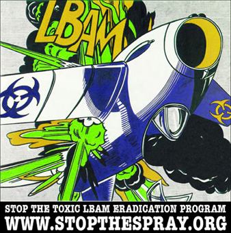 In fall 2007, despite great public outcry, high-profile lawsuits and municipal resolutions against the California Department of Food and Agriculture (CDFA) eradication campaign for the Light Brown Apple Moth (LBAM), Monterey and Santa Cruz counties were subjected to multiple nighttime strafings by low-flying aircraft dispersing a pesticide spray that poses a severe respiratory hazard, and contains ingredients with established carcinogenic, mutagenic, and reproductive toxicity.